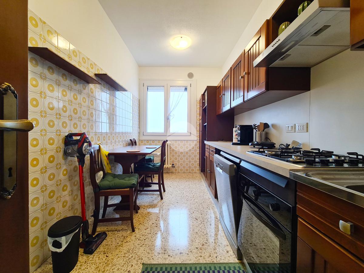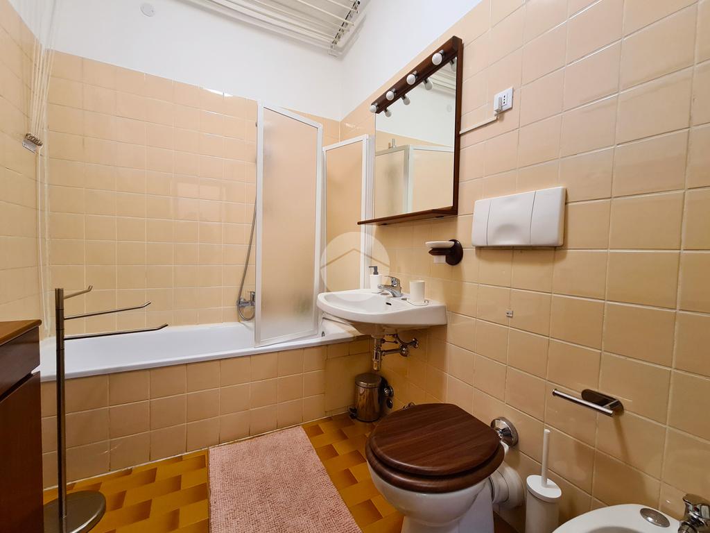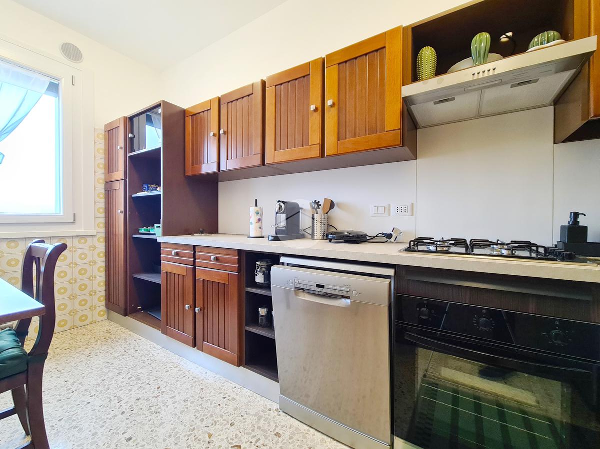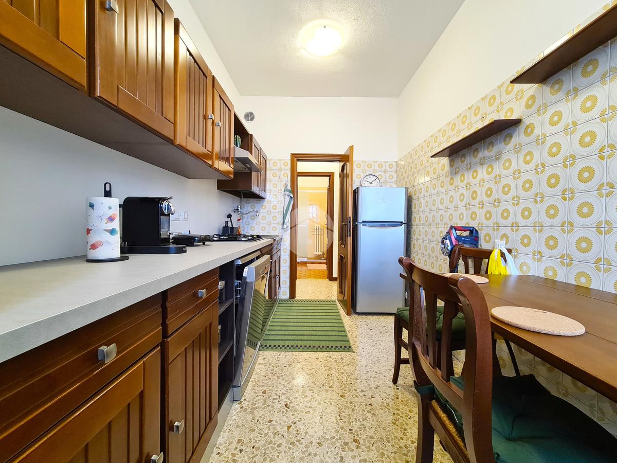 L'appartemento sito al settimo piano, è dotato di infissi in doppio vetro/pvc, di doppi servizi, due ripostigli, cucina abitabile ed è fornito di elettrodomestici, quali lavastoviglie, forno, microonde e lavatrice.