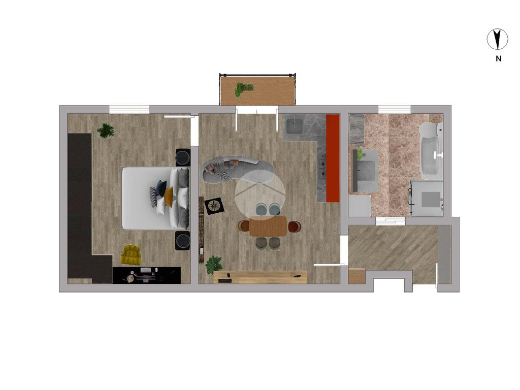 L'immobile è composto da: Ingresso, Soggiorno con cucina a vista, Camera Matrimoniale, Bagno Finestrato con doccia, Balcone. Completa la proprietà la cantina di pertinenza.
