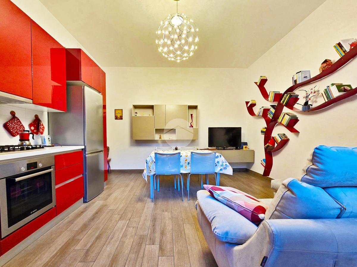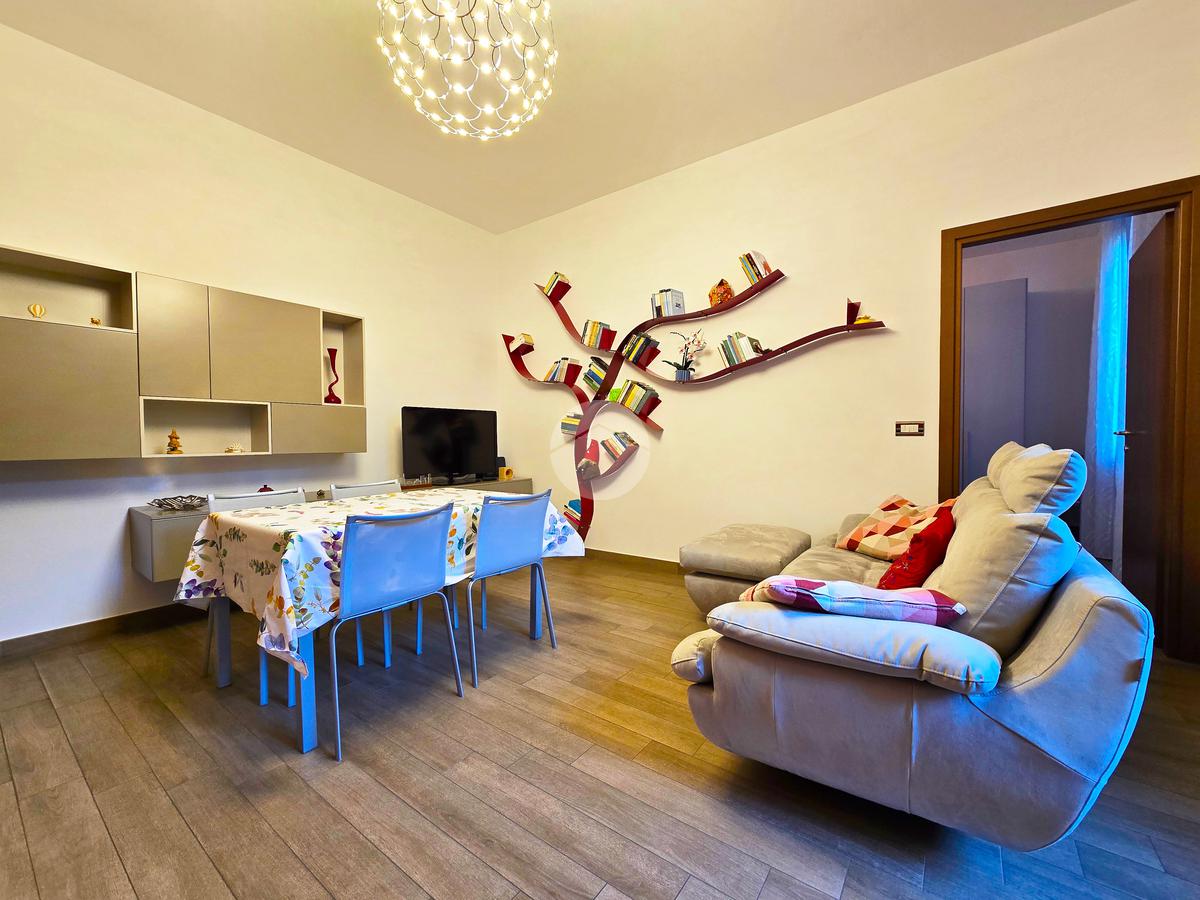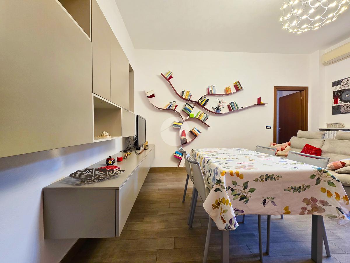 L'immobile si presenta Completamente Ristrutturato e presenta come finiture: pavimentazione gres effetto parquet su tutta la superficie ad eccezione del bagno dove troviamo pavimento in ceramica. Infissi in Pvc/Triplo vetro con camera gas per un isolamento totale dall'esterno; porta blindata, impianto di aria condizionata con 2 split, riscaldamento centralizzato a radiatori con termovalvole.